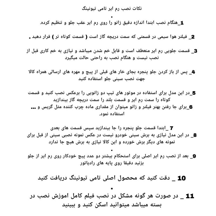 توضیحات نکات نصب رم ایر تامی تیونینگ: