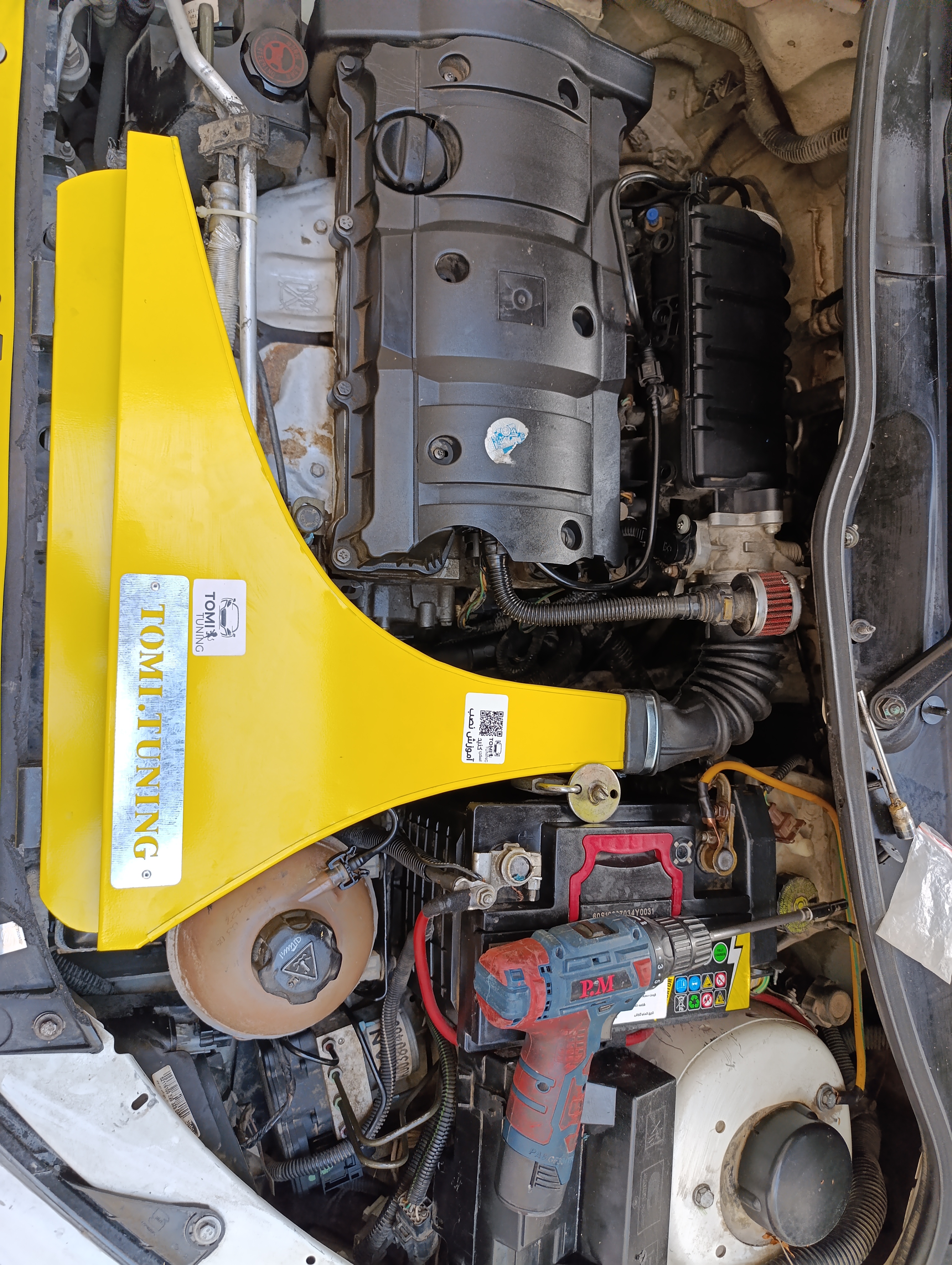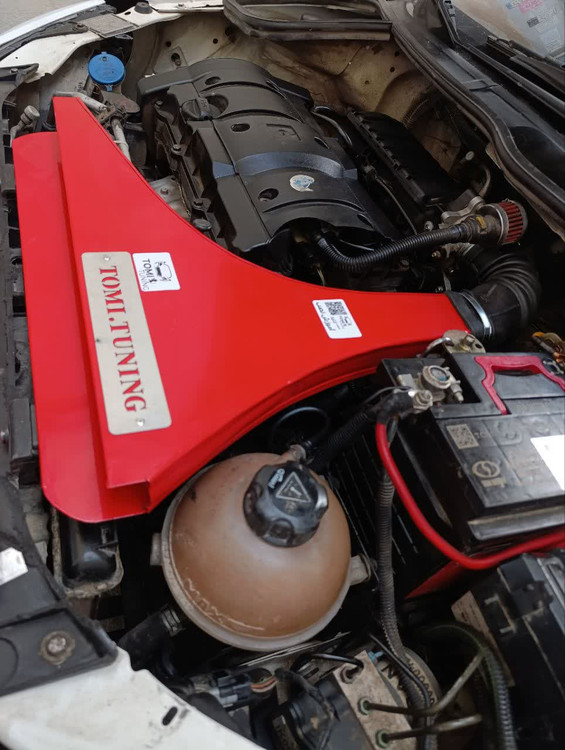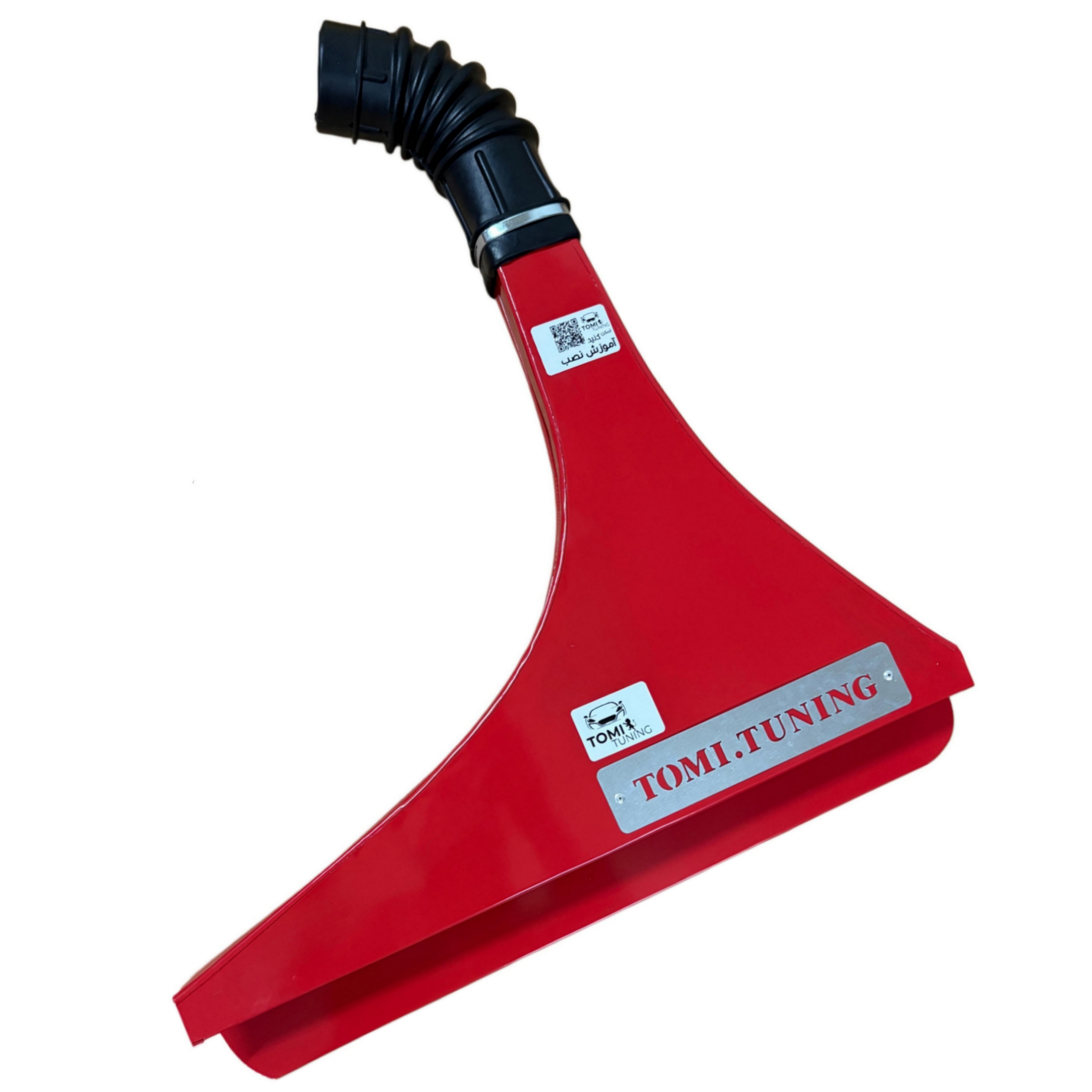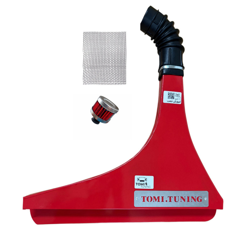 ( در هنگام نصب در مدل خودرو های مختلف نیاز است با تغییر زاویه زانویی نصب بهتری انجام دهید) . ( در صورت کوتاه بودن زانو هنگام نصب باید قسمت کوتاه را جابجا کرد و قسمت کوتاه را به دهنه رم ایر نصب کرد و قسمت بلند تر زانو را به دهنه دریچه گاز ) . ( اگر در هنگام نصب با کجی مواجه شدید بست فلزی را شل کرده و زانویی را عقب تر یا جلو تر بکشید ) . ( به عکس نمونه های نصبی توجه کنید بخصوص نوع بستن زانویی و تغییر ان در خودرو های مختلف ) . ( برای محکم کرد و مهار تکان های رم ایر لبه جلوی رم ایر را به وسیله پیچ مته ایی پیچ کنید ) . ( نکته خیلی مهم : در صورتی که زانویی را باز کردید فیلتر فلزی را دوباره بصورت صحیح سر جای خود قرار دهید ) . ( رنگ کوره ایی و نسوز است ) . [ دارای فیلتر سیمی توری فلزی ] . ( رم ایر به در بعضی از مدل خودرو ها که به نظر میرسد به کاپوت گیر میکنددر واقع هیچ گیر و ارتباطی ندارد و خطای چشمی است ) . ( در هنگام بارندگی هیچگونه ابی به داخل نمیکشد مگر اینکه وارد حجم زیادی از اب مثل چاله بزرگ اب شوید که تا روی کاپوت اب بیاید )