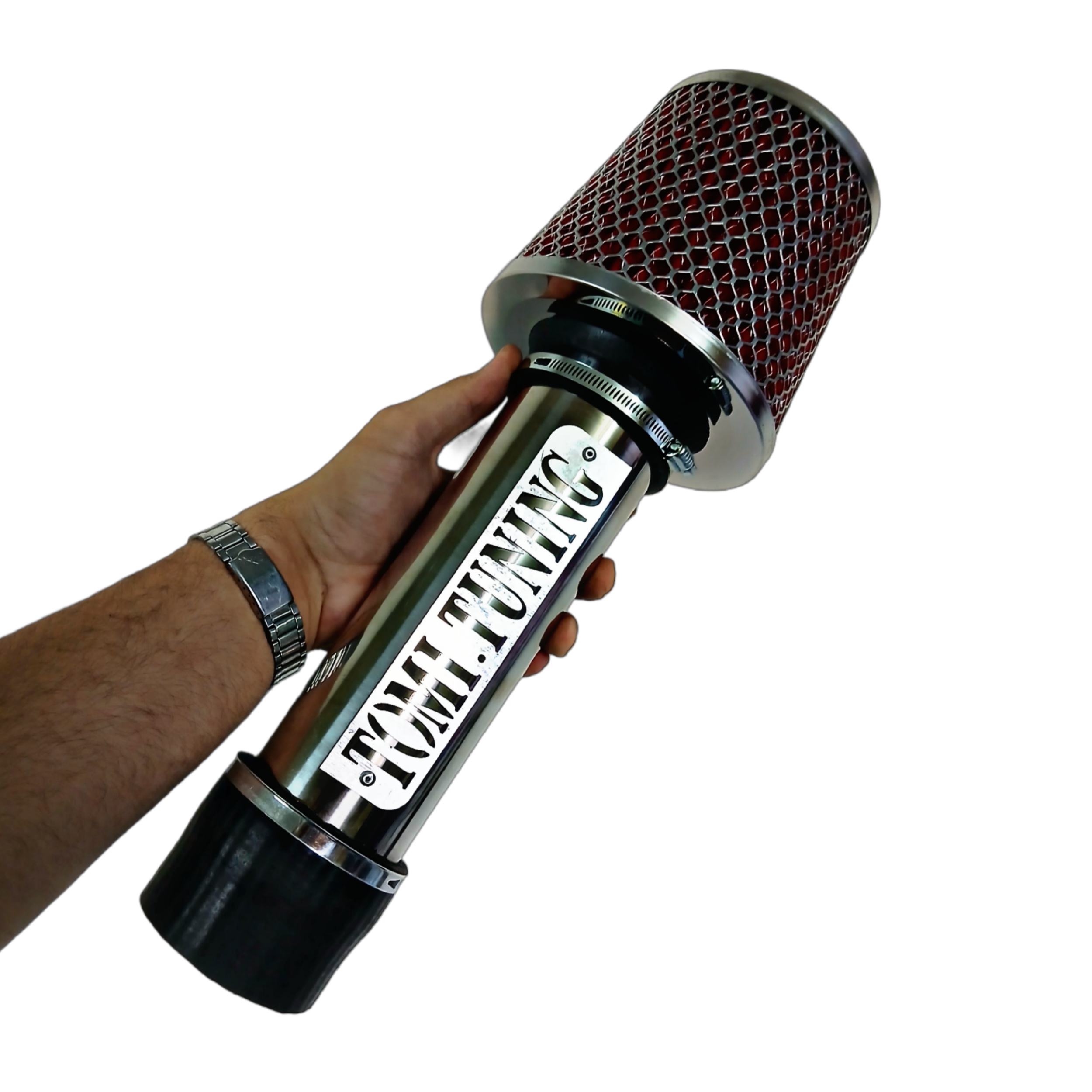 لوله اصلی قطر 63 میلیمتر با برند تامی تیونینگ _ یک عدد جنت لاستیکی _ بست فلزی دو عدد _ فیلتر هوا تیگران اصلی _ فیلتر بخار روغن